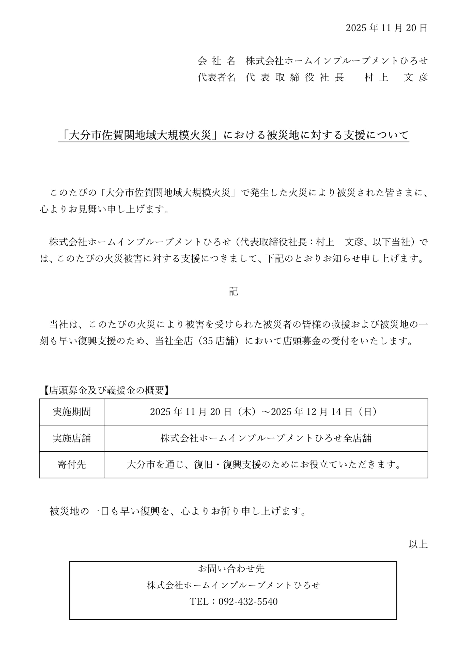 「大分市佐賀関地域大規模火災」における被災地に対する支援について
